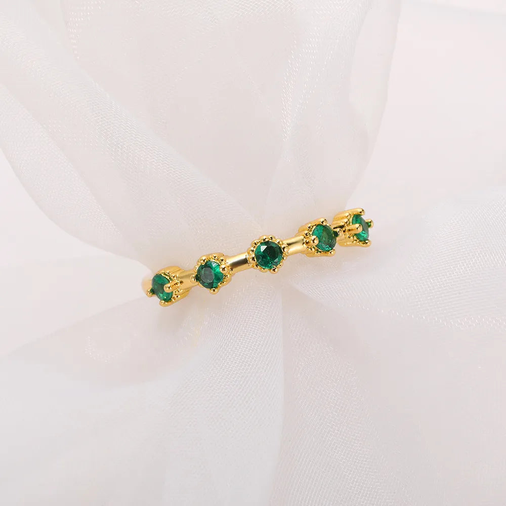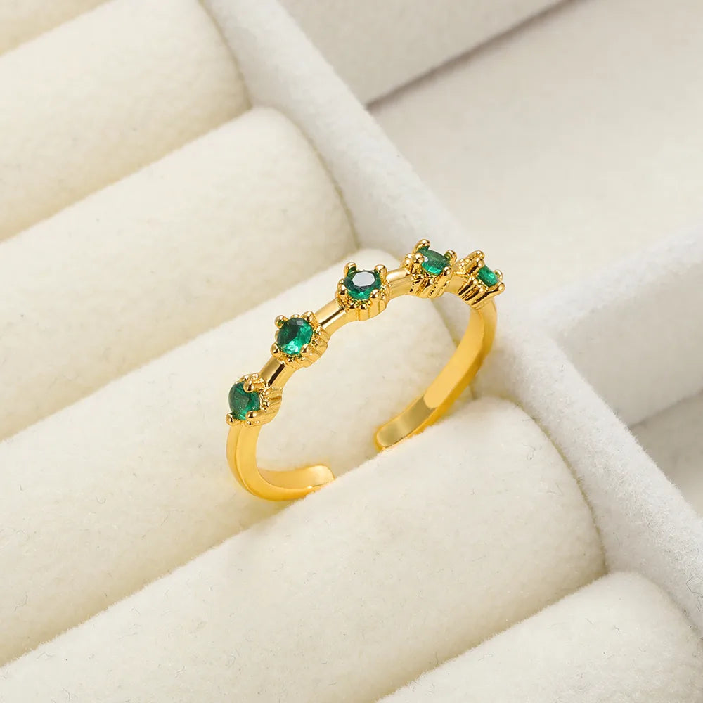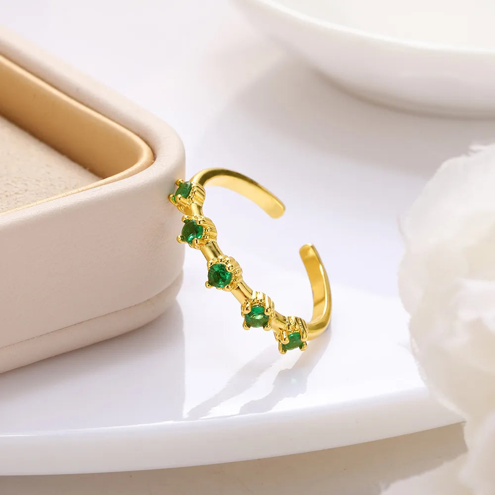 The Irish Serenity Ring™ is a delicate open ring adorned with a emerald green gems. Elegant yet understated, this fashion ring is perfect for daily wear and pairs beautifully with any outfit. Open adjustable size for a comfortable fit. Gift box included.