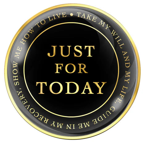 On the Back: "Just for Today" centered on the back with "Take my will and my life, Guide me in my recovery, Show me how to Live" around the chip edge.